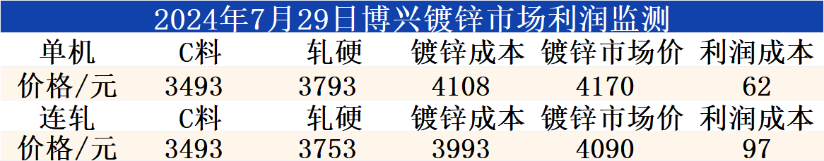7月29日博兴镀锌市场利润监测