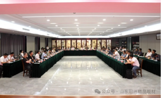 9日下午,研讨会嘉宾实地观摩了冠洲精品板材生产车间、数字展示中心、数智管控中心以及技术中心,详细了解了冠洲生产经营、企业管理、产品研发和市场应用等情况。