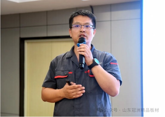 郭部长在演讲中简要介绍了冠洲基本情况,从专业角度出发详细介绍了冠洲精品板材的技术研发、生产及其在钢结构行业的产业化应用情况,同时还分享了冠洲持续创新打造的彩涂板涂层超细化分散、连续封闭、缓释控释三大核心工艺的概念和原理,并结合详实的实验数据和工程案例展示了冠洲彩板在不同行业、不同环境下的应用以及优异表现,受到了嘉宾们的一致好评。