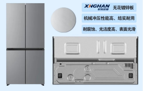 “星瀚涂镀”营销总监介绍道:“无花镀锌板的主要优势在于其表面的镀锌层能够有效防止钢材生锈,提高耐腐蚀性能,加上其表面质量、焊接性能、易于清洁等方面的优质表现,在各个行业都得到高效利用。例如家中常见品牌的冰箱、洗衣机、微波炉等家电背板、外壳等大多采用的是无花镀锌板,我们星瀚涂镀高端无花镀锌板,已经与国内外多家知名家电制造企业建立起合作关系。”