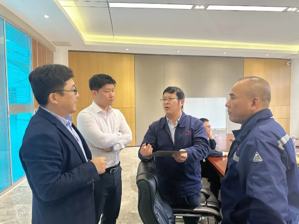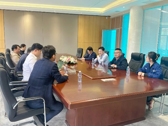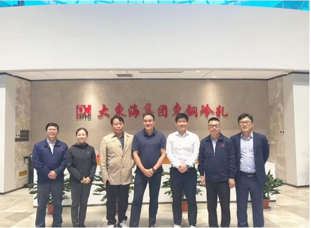 东钢冷轧负责人严春辉、销售二部部长王连臻、技术厂长李科学对韩国东部制钢株式会社和日本花阳贸易有限公司的到访表示热烈欢迎,并与韩国东部制钢株式会社一行围绕合作和技术工艺进行了深入交流。
