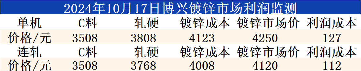 10月17日博兴镀锌市场利润监测