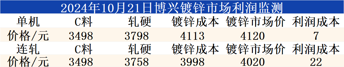 10月21日博兴镀锌市场利润监测