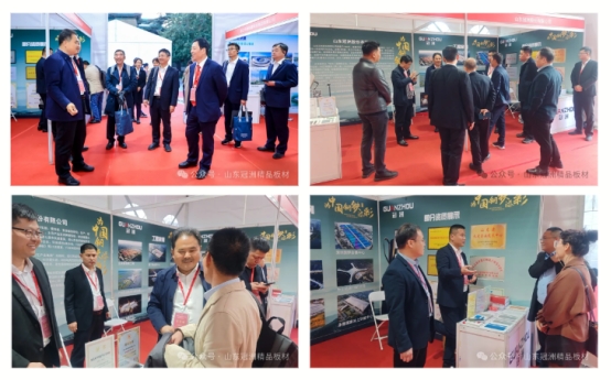 在会场外的展位上,展出的冠洲精品彩板系列产品同样受到了与会嘉宾的广泛关注。嘉宾们来到冠洲展位观摩交流,仔细了解冠洲产品的生产研发、市场应用案例等情况,对冠洲品牌及产品做了深入了解并给与充分肯定,表达了未来合作意向。