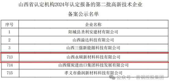 近日,依据《高新技术企业认定管理办法》(国科发火〔2016〕32号)和《高新技术企业认定管理工作指引》(国科发火〔2016〕195号)相关规定,山西永硕新材料科技有限公司荣膺国家级“高新技术企业”称号,这一里程碑式的认定标志着集团在科技创新领域的卓越成就。