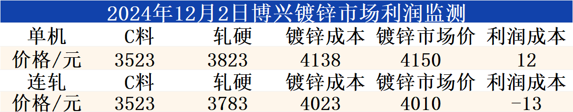 12月2日博兴镀锌市场利润监测