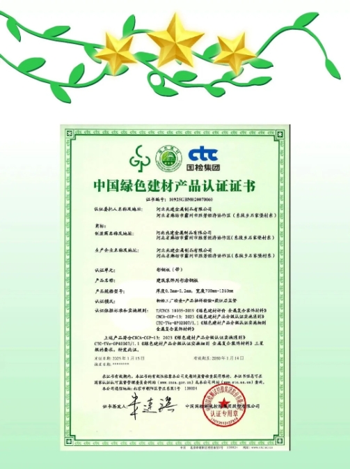 喜报|河北兆建彩涂板荣获绿色建材三星级认证!