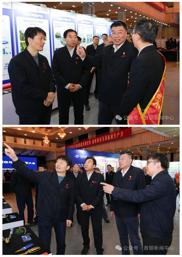 会前,集团领导在文馆观看了以“真抓实干·协同创新”为主题的2024年首钢科技创新与管理创新成就展,认真听取了相关新技术、新成果的介绍。