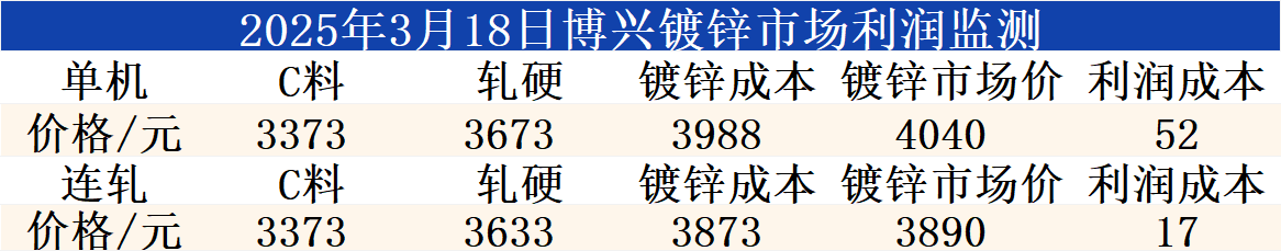 3月18日博兴镀锌市场利润监测