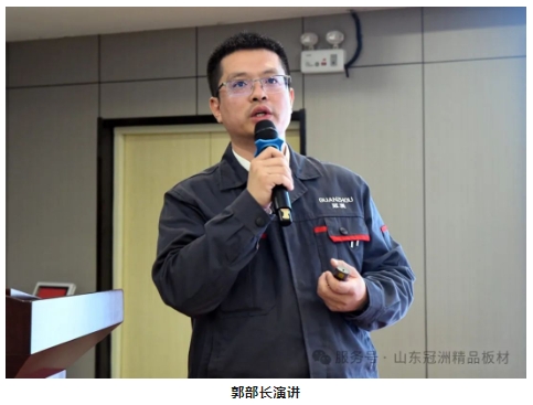 冠洲制造部郭部长作了《冠洲彩色涂层板材与建筑主体设计寿命同步》主题报告。从专业角度出发向嘉宾们详细介绍了冠洲精品板材的技术研发、生产及其产品应用情况,同时还分享了冠洲持续创新打造的彩涂板涂层超细化分散、连续封闭、缓释控释三大核心工艺的概念和原理,并结合详实的实验数据和工程案例展示了冠洲彩板在不同行业、不同环境下的应用以及优异表现。