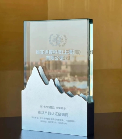 作为宝钢彩涂产品的长期合作伙伴,维实涂镀科技(上海)有限公司凭借多年来稳定出色的市场表现与专业高效的服务能力,于近日再度荣获宝山钢铁股份有限公司授予的 2025 年度彩涂产品认证经销商资质。