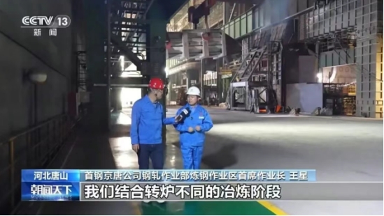 央视新闻的镜头还深入到首钢京唐“智慧大脑”——生产管控中心以及智能炼钢现场。在生产管控中心,巨型屏幕实时流动着全厂数据信息。操作员轻点鼠标,一批矿石从码头卸货、高炉熔炼到轧制成型的全流程尽在掌控。在钢轧部炼钢作业区主控室,操作工通过远程下达指令,一炉钢水便在AI调度下自动完成冶炼。偌大的生产现场,仅有2名技术人员值守——数十个高温高危岗位已被人工智能与机器人替代。首钢京唐钢轧部炼钢作业区首席作业长王星介绍,他们结合转炉不同的冶炼阶段,加了多组摄像头,来代替人工的眼睛,通过大数据的模拟和视觉的识别,冶炼周期缩短2.5分钟,钢铁料消耗指标降低2.9公斤每吨,总体的成本也大幅降低。