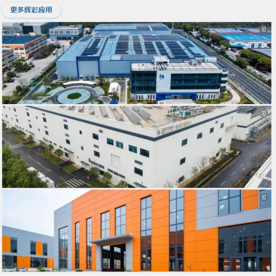 为了实现企业绿色、降碳的发展理念,基地外墙的围护材料选择了集美观与性能于一体的墙面材料——辉彩?系列。