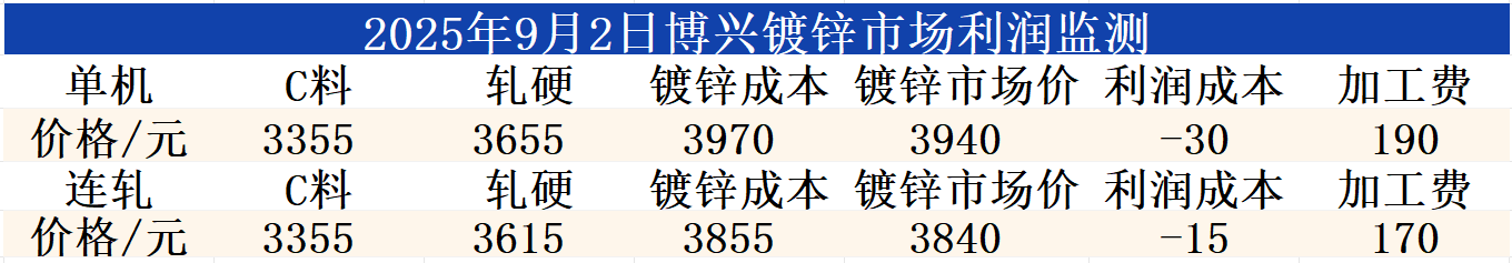 9月2日博兴镀锌市场利润监测