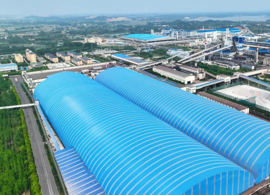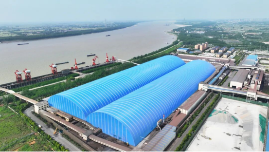 长江江畔,圆拱似造型的厂房静静伫立,清新亮眼的蓝色系外观与江水、天空交相呼应,是自然环境与工业力量和谐共生的真实写照,更是自然韵味与工业力量之间的完美融合。