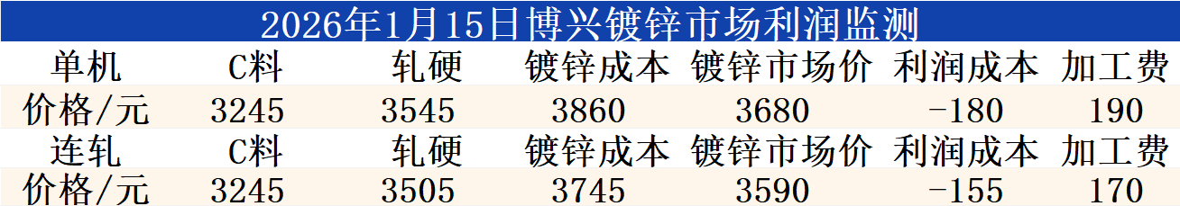 1月15日博兴镀锌市场利润监测
