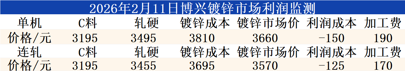 2月11日博兴镀锌市场利润监测