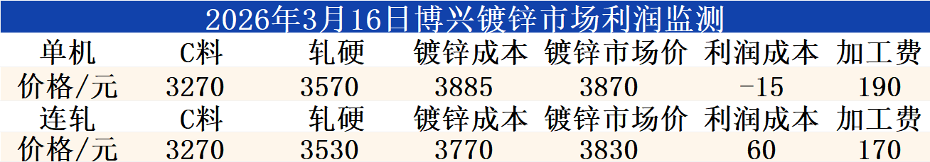 3月16日博兴镀锌市场利润监测