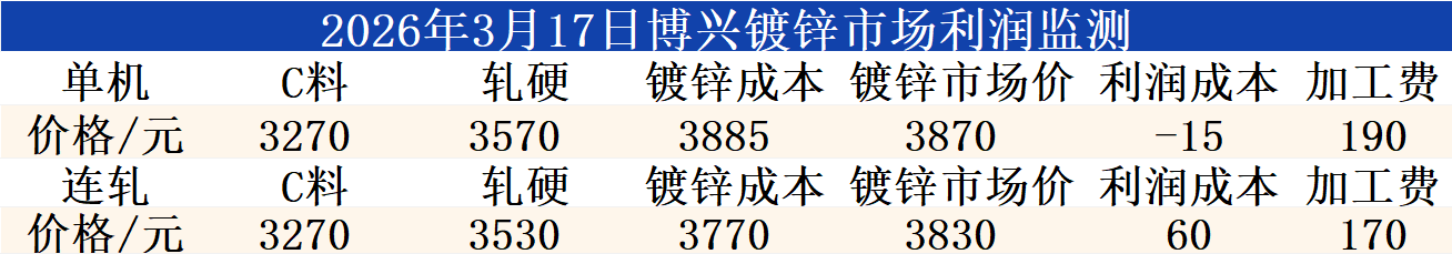 3月17日博兴镀锌市场利润监测