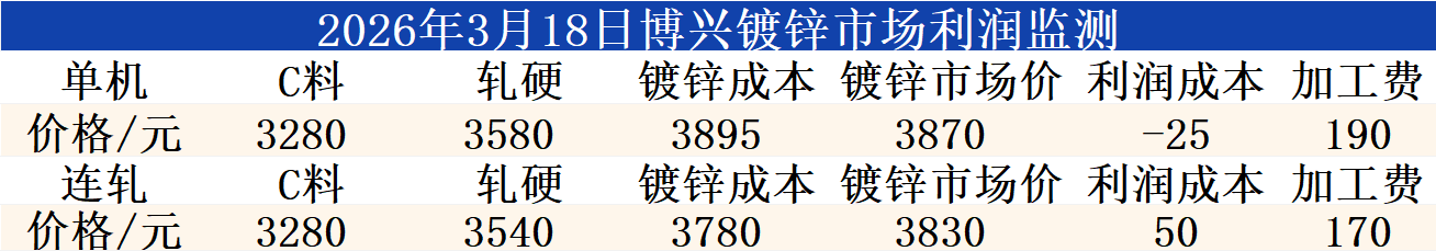 3月18日博兴镀锌市场利润监测