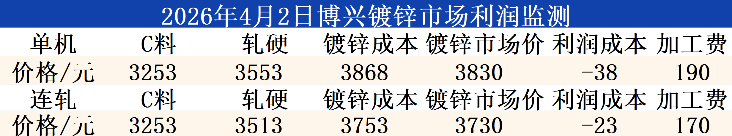 4月2日博兴镀锌市场利润监测