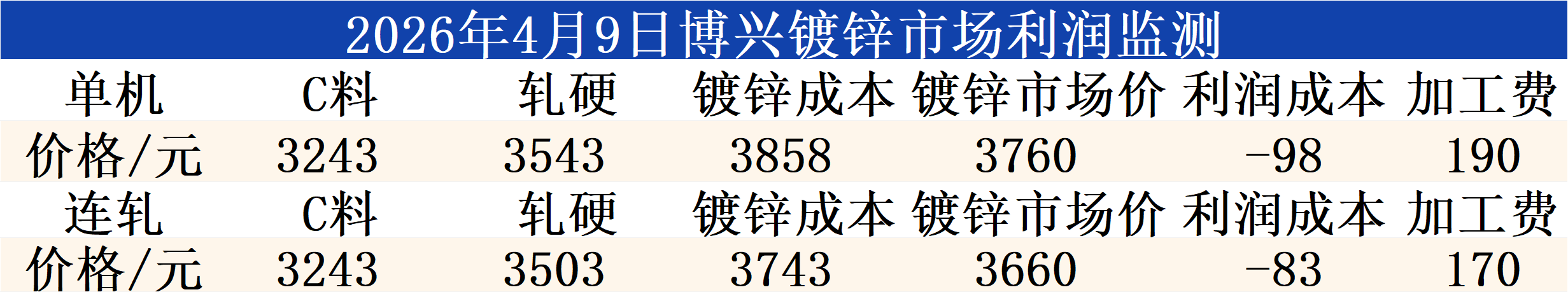 4月9日博兴镀锌市场利润监测