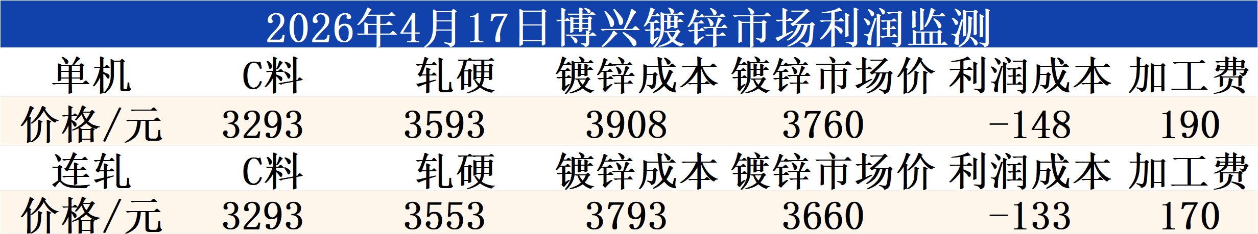 4月17日博兴镀锌市场利润监测