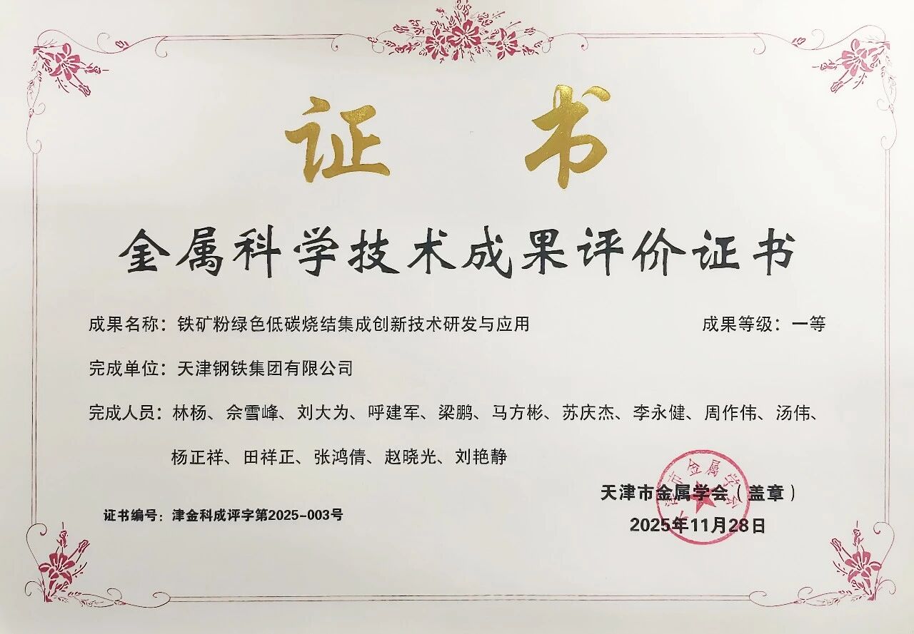 近日,天津市金属学会发布2025年度科技成果评价结果,天钢公司三个项目分别荣获一等奖、二等奖、三等奖,充...[详情]